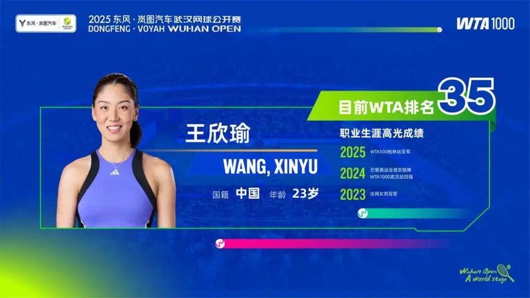 此外,还有多名中国球员也将本土作战,现世界排名第35位的王欣瑜直通正赛。作为中国网球女单二号人物的王欣瑜近期状态稳定,她先在WTA500柏林站斩获亚军,随后在美网连续第三届成功晋级次轮。去年,王欣瑜曾在武网半决赛与郑钦文上演「中国德比」,尽管最终止步半决赛,但也让人们看到中国女子网球项目上整体实力的提升。本届武网“中国金花”们能否再次取得突破,值得球迷期待。