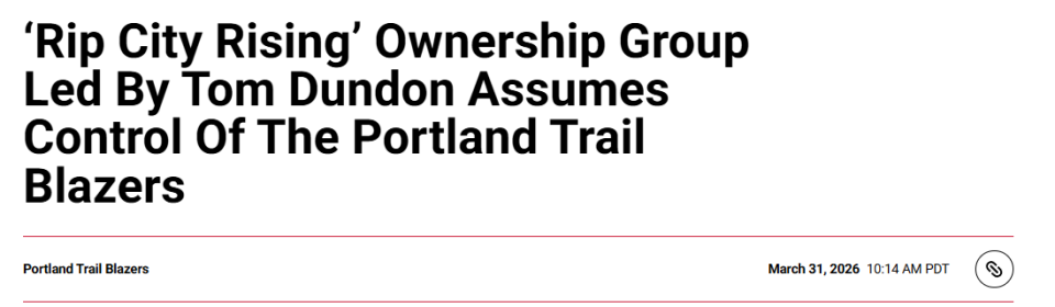北京时间4月1日,在NBA理事会全票通过后,由汤姆-邓登领衔的撕裂之城崛起(Rip City Rising)收购集团已完成对波特兰开拓者队、撕裂之城混音队以及运营摩达中心与玫瑰区园区的管理公司的多数股权收购。杨瀚森的球队老板也正式从乔迪-艾伦换成邓登。